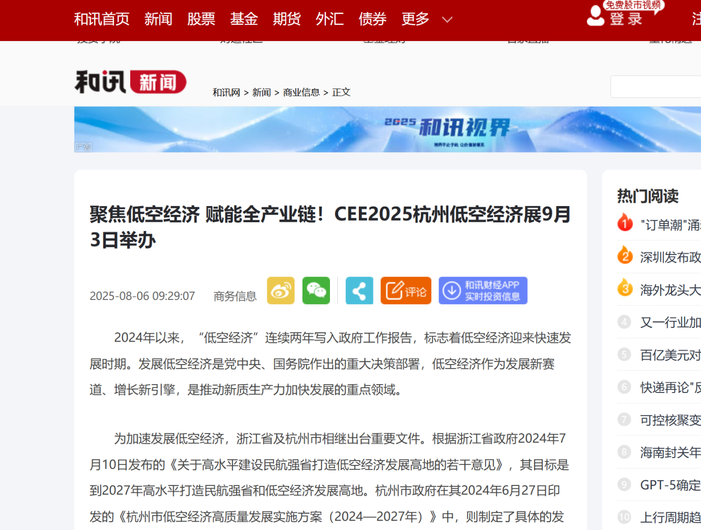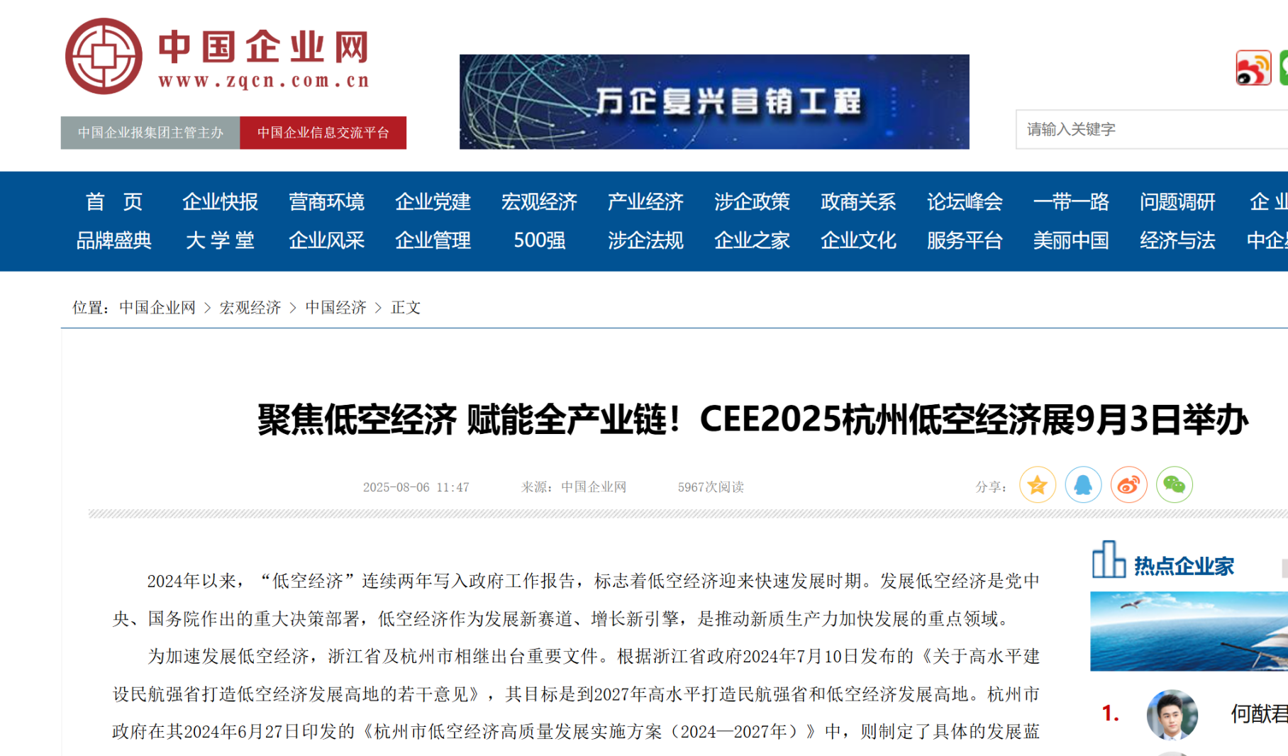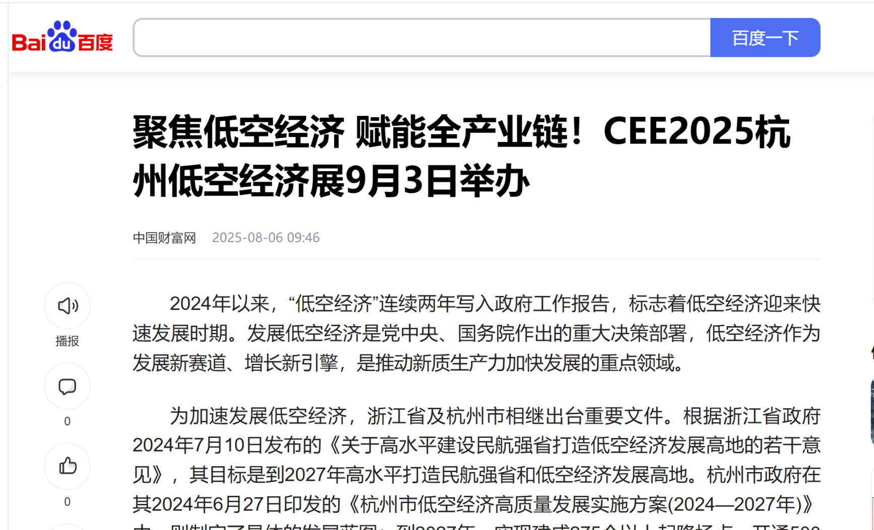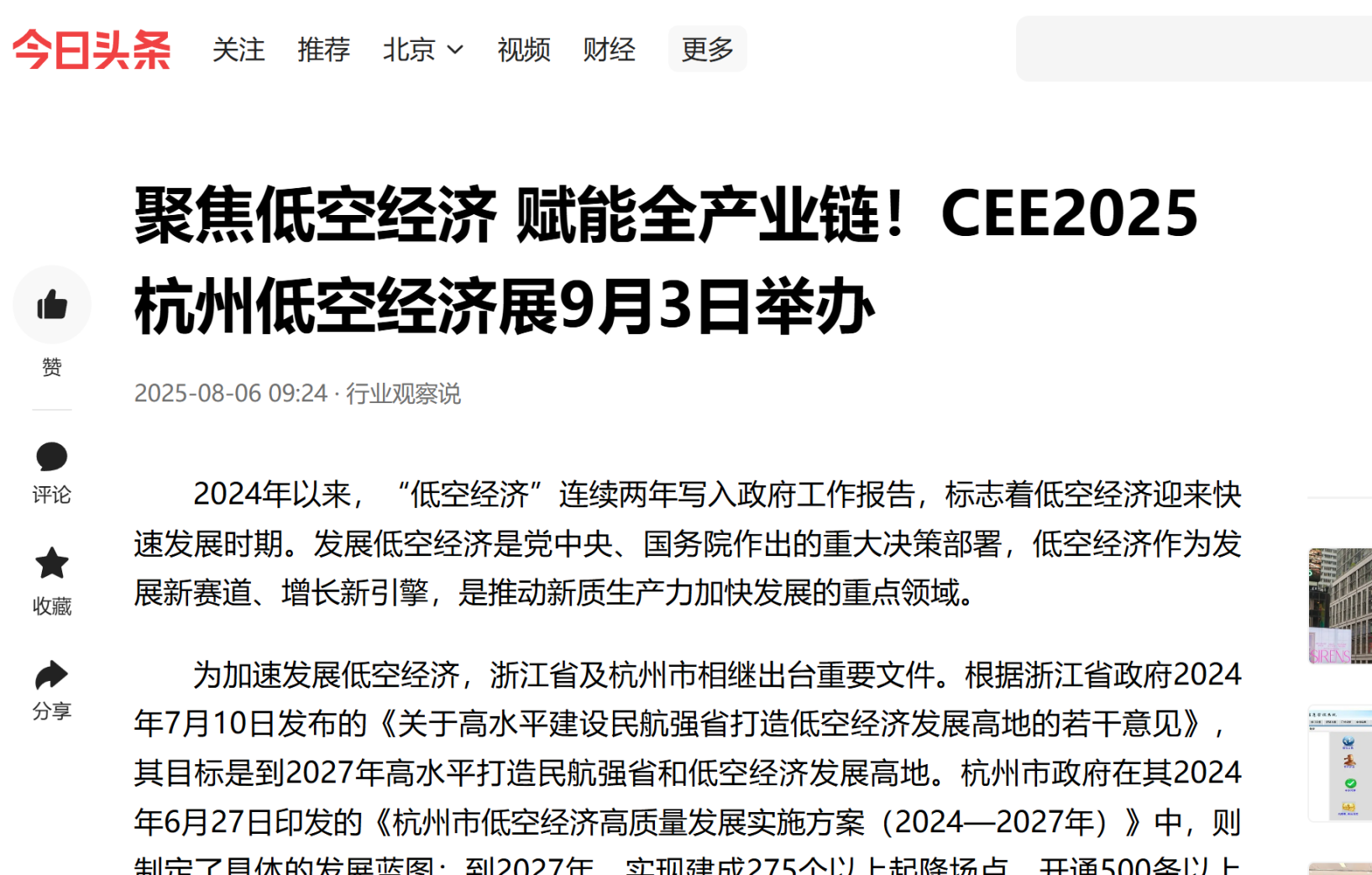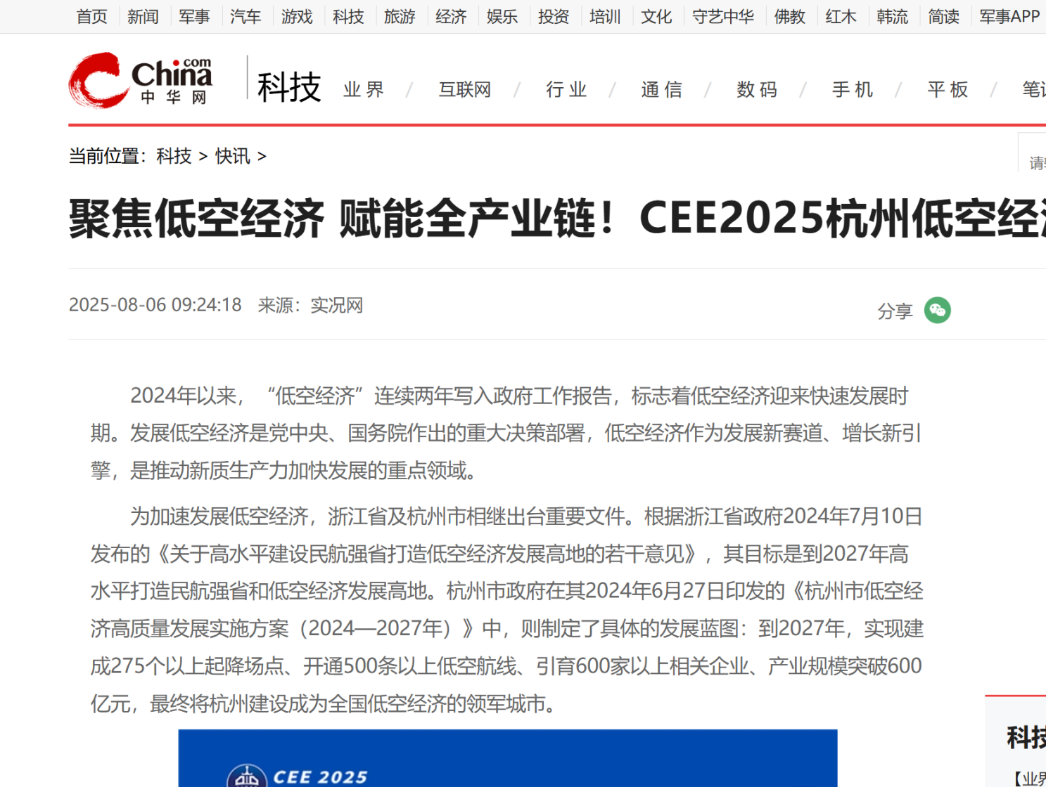 在國(guó)家對(duì)低空經(jīng)濟(jì)的高度重視與積極推動(dòng)下,由全國(guó)低空經(jīng)濟(jì)發(fā)展大會(huì)秘書處協(xié)同相關(guān)政府主管部門、國(guó)家相關(guān)協(xié)會(huì)、河南省無(wú)人機(jī)行業(yè)協(xié)會(huì)、成都市無(wú)人機(jī)產(chǎn)業(yè)協(xié)會(huì)、深圳市航空業(yè)協(xié)會(huì)、太原市無(wú)人機(jī)應(yīng)用協(xié)會(huì)、廈門市無(wú)人機(jī)行業(yè)協(xié)會(huì)、溫州市無(wú)人機(jī)安全管理協(xié)會(huì)、東莞市無(wú)人機(jī)協(xié)會(huì)、惠州市無(wú)人機(jī)應(yīng)用協(xié)會(huì)等聯(lián)合舉辦的“全國(guó)低空經(jīng)濟(jì)發(fā)展大會(huì)暨CEE2025中國(guó)(杭州)低空經(jīng)濟(jì)博覽會(huì)”(簡(jiǎn)稱:CEE2025杭州低空經(jīng)濟(jì)展),將于2025年9月3-5日在杭州國(guó)際博覽中心舉辦,預(yù)計(jì)展出面積將達(dá)20,000平方米,專業(yè)采購(gòu)商約25,000人次。